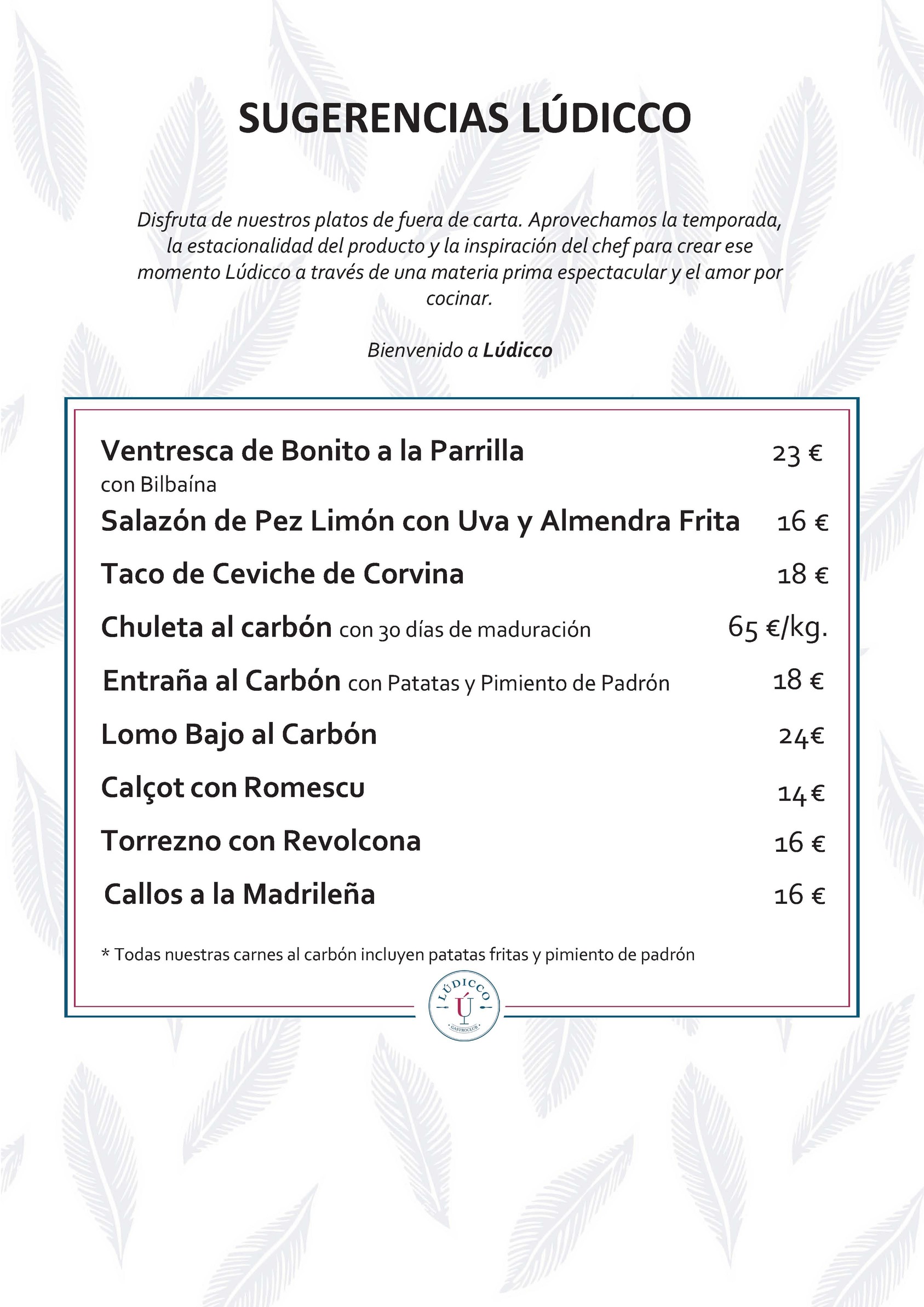 Nuestro Chef Lúdicco, te trae las sugerencias fuera de carta para este fin de semana. ¡No te lo pierdas!