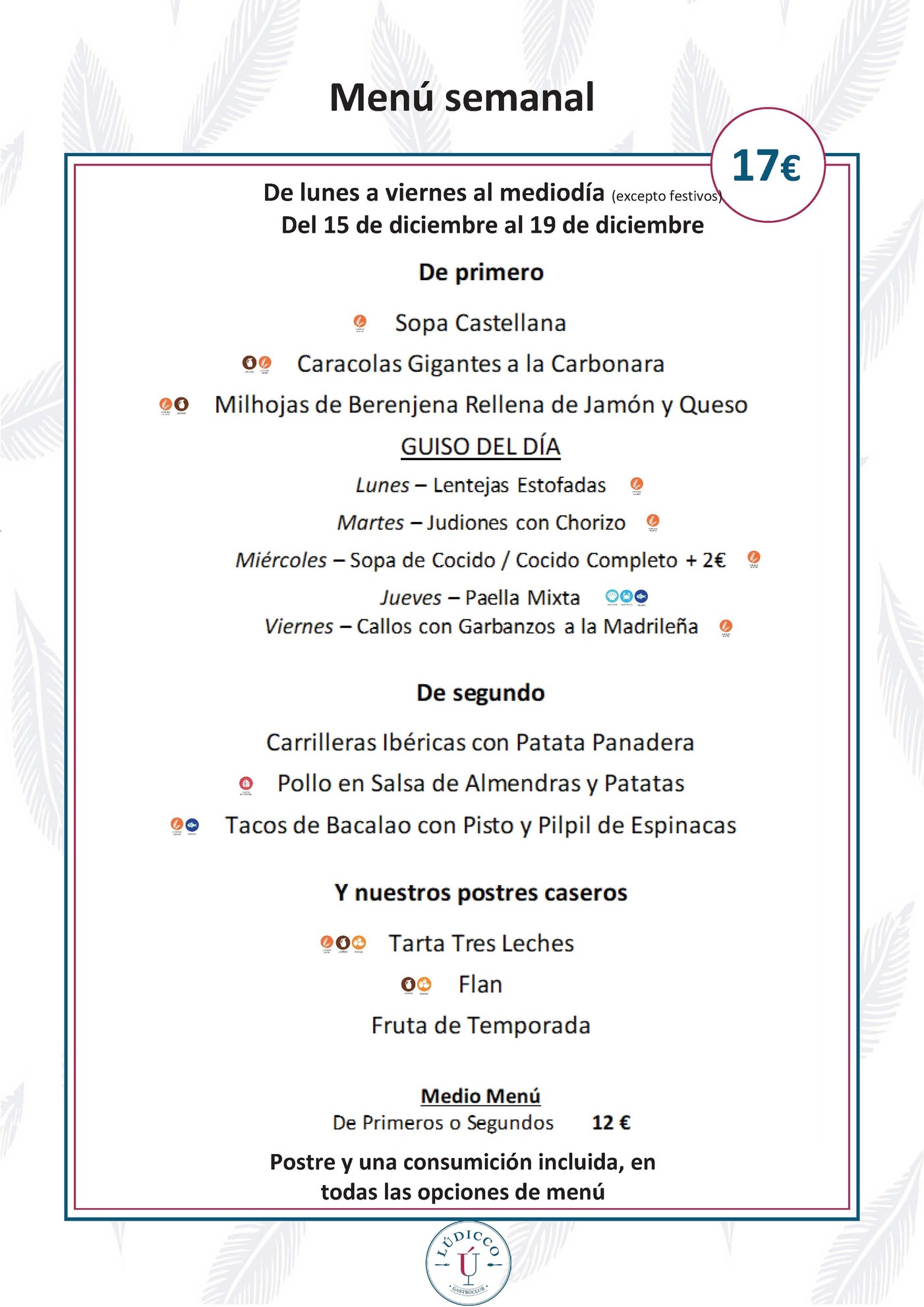 Queremos sorprenderte todos los días, por ello, semanalmente crearemos para ti un menú especial con cinco primeros, cinco segundos y tres postres para que puedas elegir. Pan, café y una consumición incluida.